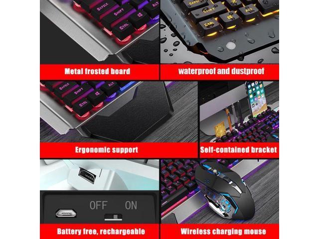 Wireless Gaming Keyboard Mouse Set and Wireless Gaming Headset Rainbow Backlit Rechargeable Metal Mechanical Feel Keyboard for Laptop PC Gamer Office