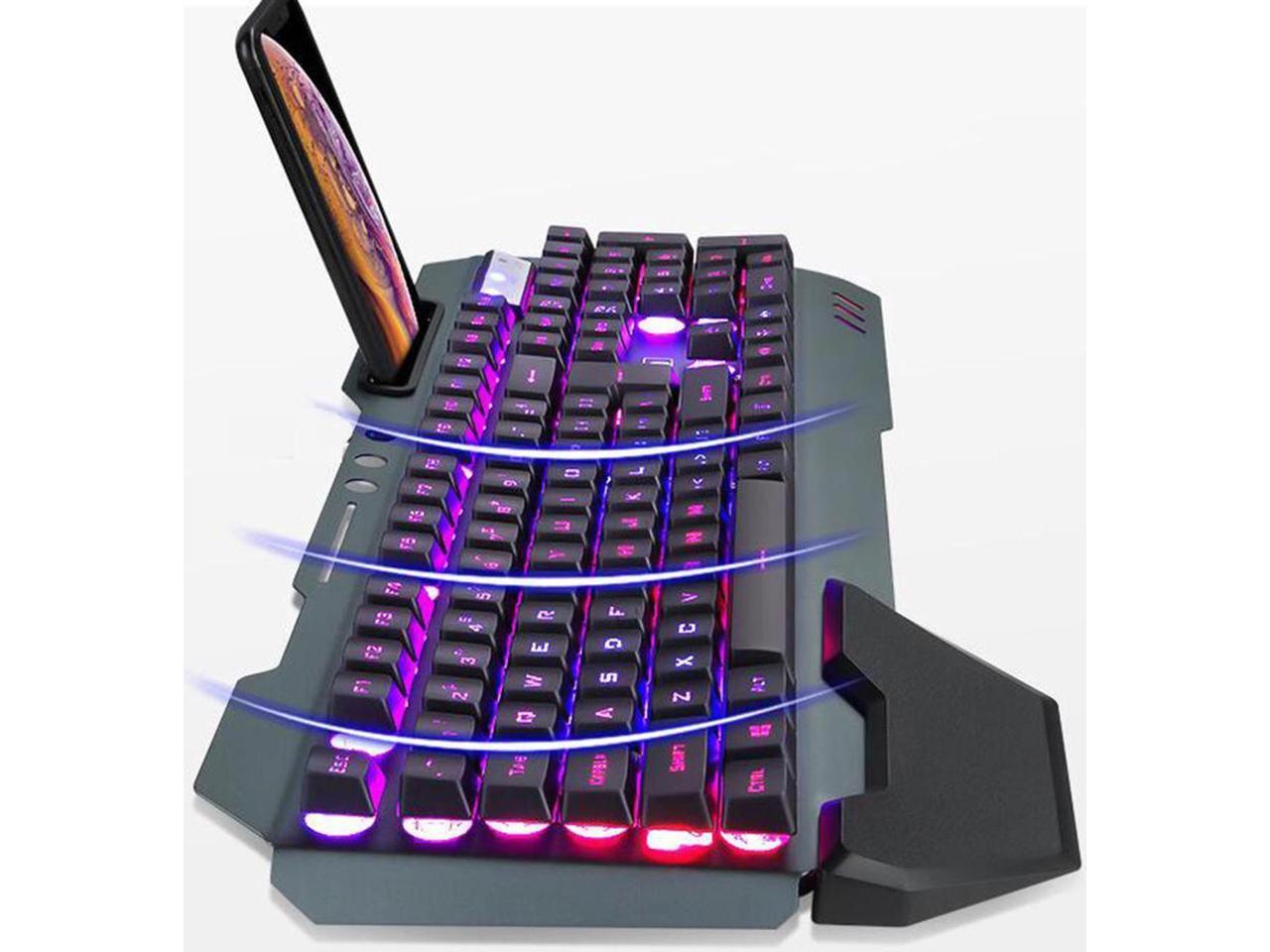 - Ergonomic design for wireless keyboard and mouse, the keyboard comes with a phone stand for placement of mobile phones.