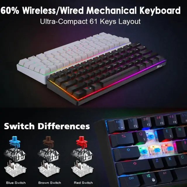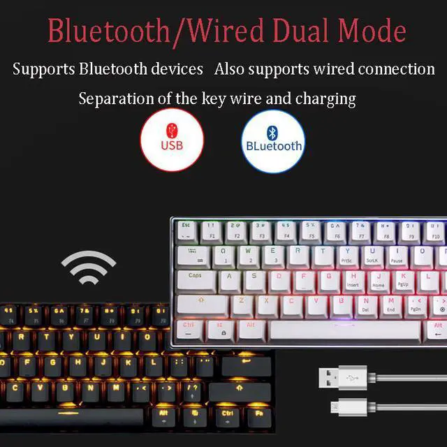 1.Multi-device and dual connectivity: RK61 is an universal mechanical keyboard with 61 keys for typing on all your Bluetooth-enabled computers or mobile devices that support external keyboards with HID profile, such as laptop, computer, tablet, smartphone.
