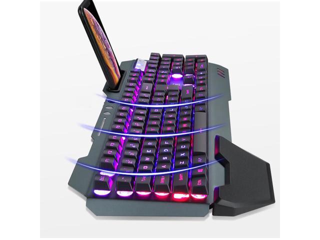 - Ergonomic design for wireless keyboard and mouse, the keyboard comes with a phone stand for placement of mobile phones.