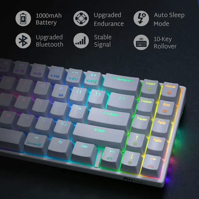 Wireless mode, 1 minute no operation, keyboard backlight automatically off, 5 minutes no operation, the keyboard into standby mode. 10 minutes no operation, enter deep sleep mode. You can press any key to wake up the keyboard;