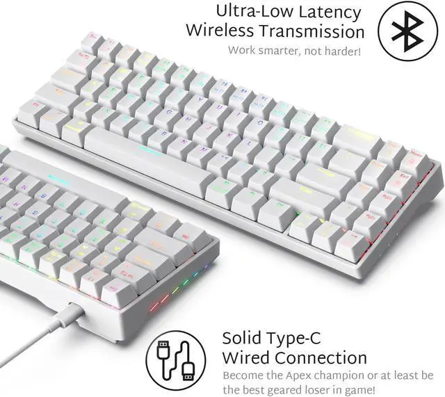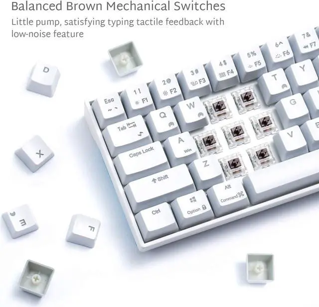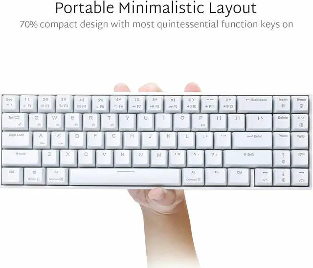 Small size super compact mechanical keyboard with 71 keys. With separate arrow keys, suitable for office and home use. The 71-key compact layout makes it ideal for reducing space;