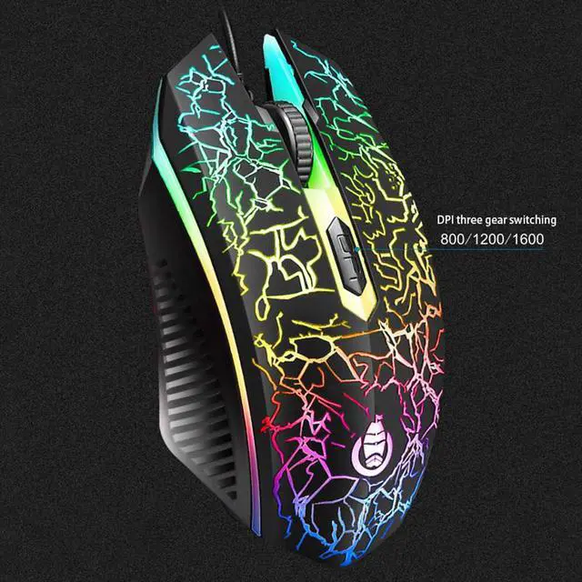 USB wired gaming mouse with 3 buttons, LED breathing light change automatically, 3 Levels DPI adjustable: 800/1200/1600,easy to control different game scenes
