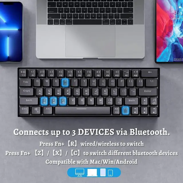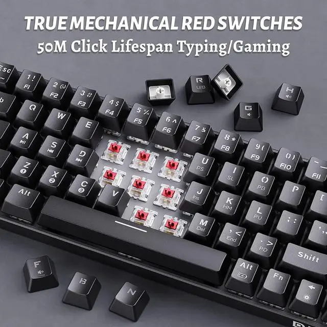 60% Wireless Mechanical Gaming Keyboard, RGB Backlit with Arrow Keys Wired Bluetooth Keyboard, 63 Keys Compact Mini Keyboard Full Key Programmable, Easy to Carry on Trip -Red Switch