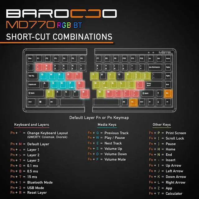 Wireless Computer Keyboard: Mistel Bluetooth mechanical keyboard can connect up to 3 devices simultaneously and can switch among them easily by clicking the button of PN + F1 to F3 after pairings are connected successfully. MD770RGBBT can let you unleash the distance when using it with your computers and mobile devices.