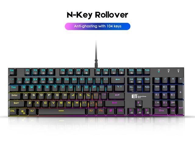 ET Mechanical Gaming Keyboard RGB Backlit Keys Computer Keyboard, 16.8 Million Color 104 Keys Blue Switch Wired Gaming Keyboards Full Size, Aluminum Base USB Keyboard for PC Gamer Laptop,black