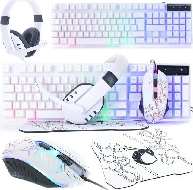 Gaming Mouse and Keyboard and around the Head Gaming Headset and Mouse Mat Complete Starter pack all in one great Gift box (This Bundle includes FOUR items)