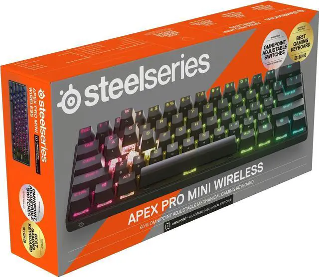 Apex Pro Mini 60% Wireless Mechanical OmniPoint 2.0 Adjustable Actuation Switch Gaming Keyboard with RGB Backlighting