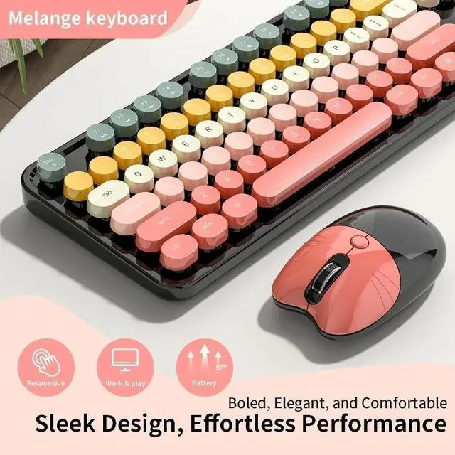 FADE-RESISTANT KEYS & RELIABLE CONNECTION This retro keyboard and mouse wireless set features fade-resistant keycaps and a stable 2.4GHz wireless connection up to 33 feet. The plug-and-play design allows quick, driver-free setup.