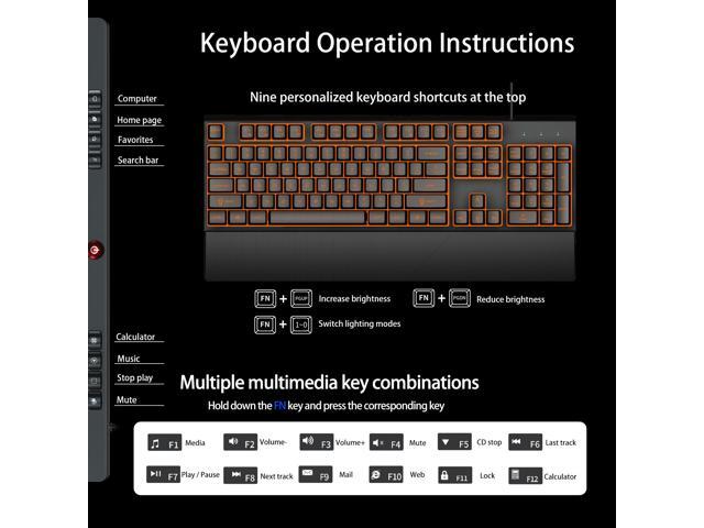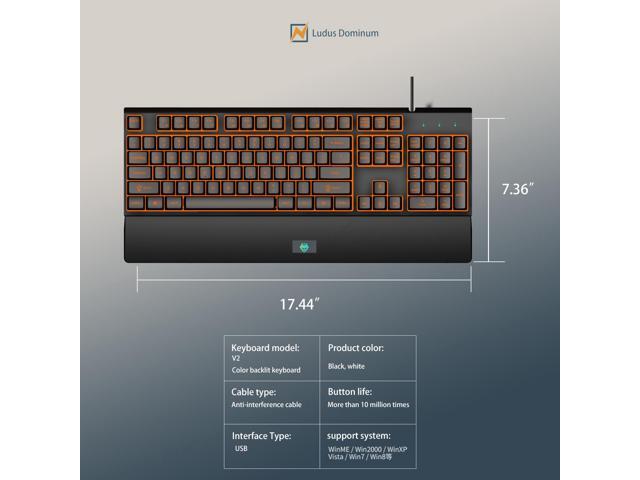 - [Adjustable LED backlit gaming keyboard] LED backlit gaming keyboard. LED backlight designs.Contains multiple multimedia and shortcut keys, ergonomic design, including bracket and palm rest. Double injection molding process is more durable.