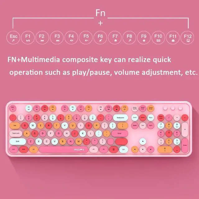 1. FN+Multimedia composite key can realize quick operation such as play/pause, volume adjustment, etc.