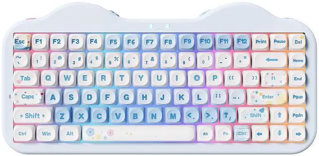 YUNZII C75 features stunning 3-zone RGB illumination that lets you customize the keys, cute cat face emblem, and side underglow separately. Cycle through endless preset effects with easy FN+ controls, turn on/off lights by Fn+Backspace or Fn+Enter to change color. More RGB shortcuts are listed in the manual and on the following page.