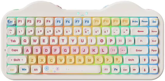 YUNZII C75 features stunning 3-zone RGB illumination that lets you customize the keys, cute cat face emblem, and side underglow separately. Cycle through endless preset effects with easy FN+ controls, turn on/off lights by Fn+Backspace or Fn+Enter to change color. More RGB shortcuts are listed in the manual and on the following page.