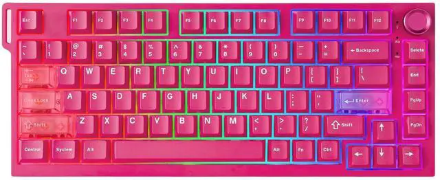 The pc gaming keyboard supports a 128K scan rate and rapid trigger technology. With N-key rollover and light-up keyboard effects, this computer keyboard is built for FPS/MOBA games. The black/pink keyboard features durable PBT keycaps and houses an 8000mAh battery for extended wireless use.