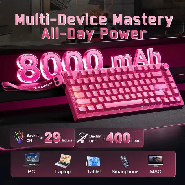 This wireless Bluetooth keyboard ensures seamless switching between devices (Windows/macOS/Android). The USB keyboard mode delivers 8000Hz polling for competitive play, while the wireless mechanical keyboard functionality provides reliability for mobile setups.
