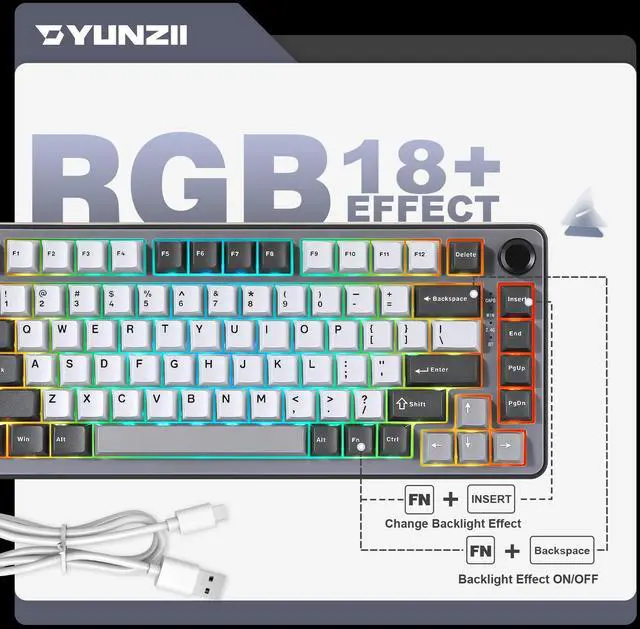 The PC gaming keyboard has more than 20 built-in backlight modes and south-facing LEDs. A variety of dynamic RGB effects and programmable software allow you to experience the unlimited fun of customization. The programmable function of this 75 percent keyboard allows redefining the key, macro settings, and customizing RGB in the Windows system.RGB keyboard is compatible with Windows and MacOS and can work smoothly on all kinds of devices.