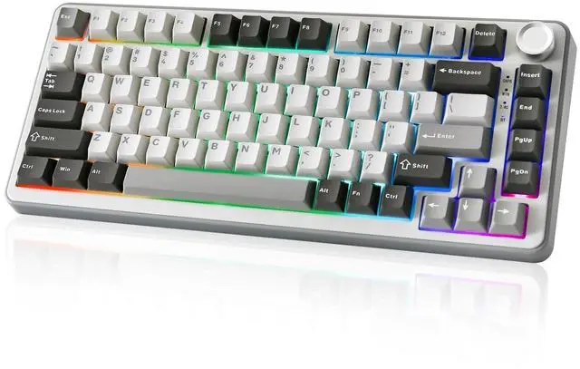 The B75 PRO is a compact keyboard with a knob and 82 keycaps. The TKL keyboard has number keys, function keys, and arrow keys at the same time. The multi-function knob of the 75% compact mechanical keyboard enables you to adjust the sound level and backlit fast. Long-press the multifunctional knob of this RGB keyboard to switch between gaming and office modes, and rotate the knob to adjust the keyboard volume and RGB backlit effects.