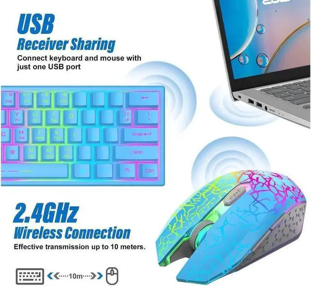• 60% Compact keyboard, 100% Portablethis 60 percent wireless gaming keyboard is more compact and space-saving to sit on your desk and leave more room for your mouse movement. Its easier and super portable to travel with or carry around when youre out.