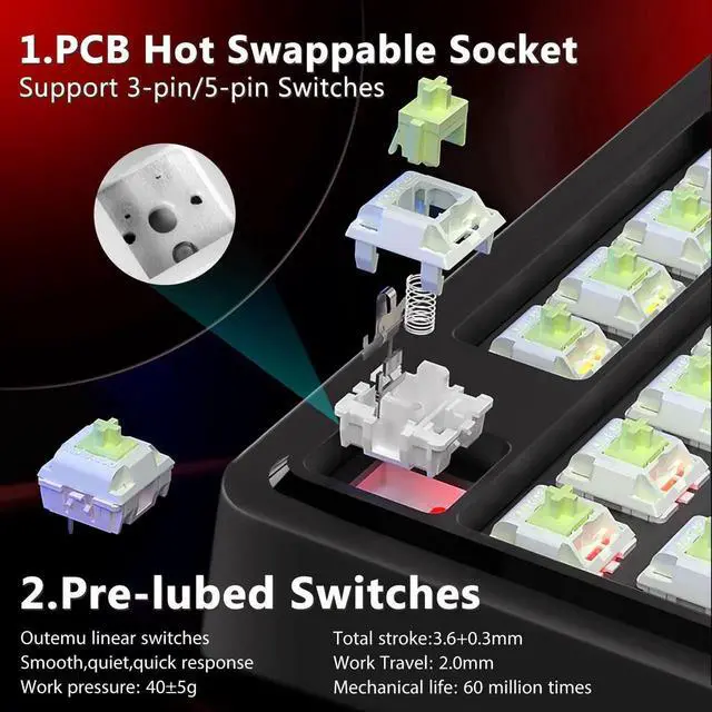 Gasket-Mounted Design for Premium Typing Experience: Engineered with a gasket structure and extended integrated silicone pad, this keyboard delivers a soft, elastic typing feel with enhanced stability. The PCB single-key slotting optimizes resilience, ensuring every keystroke is smooth and responsive. Five layers of sound-dampening material fill the gaps between the PCB, positioning plate, and switches, effectively reducing cavity noise and creating a solid, satisfying typing soundideal for both quiet workspaces and immersive gaming sessions.