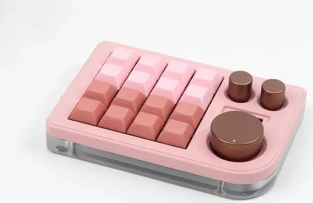 KEEBMONKEY Megalodon Triple Knob Macro Pad Programmable Designer Mini Keyboard 16 Keys (Pink)