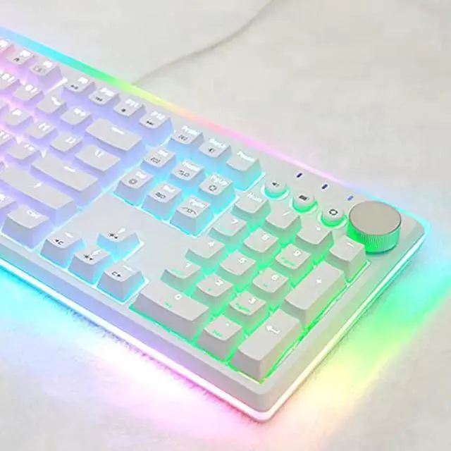 i-rocks K71M RGB Mechanical Gaming Keyboard with Media Control Knob, Switches (Red), 107 Keys w/Full NKRO, PBT Keycaps, Multimedia Hotkeys, Detachable USB-C Cable and Onboard Storage, White