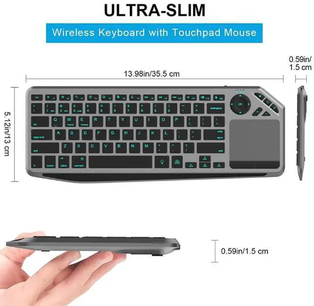 Wireless RGB Touch Keyboard, 78 Keys Ultra Slim QWERTY Touchpad BT/USB/ 2.4G with Wrist Rest Support Multiple Devices 7 Color Backlight Multi Gesture Touch Control Hotkey for Phone PC Laptop Tablet