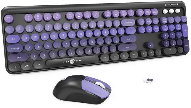 Wireless Keyboards Mouse Combos, Creamy Keyboard, Cute Wireless Keyboard and Mouse Set for Desktop Laptop PC Computer (Black Purple)