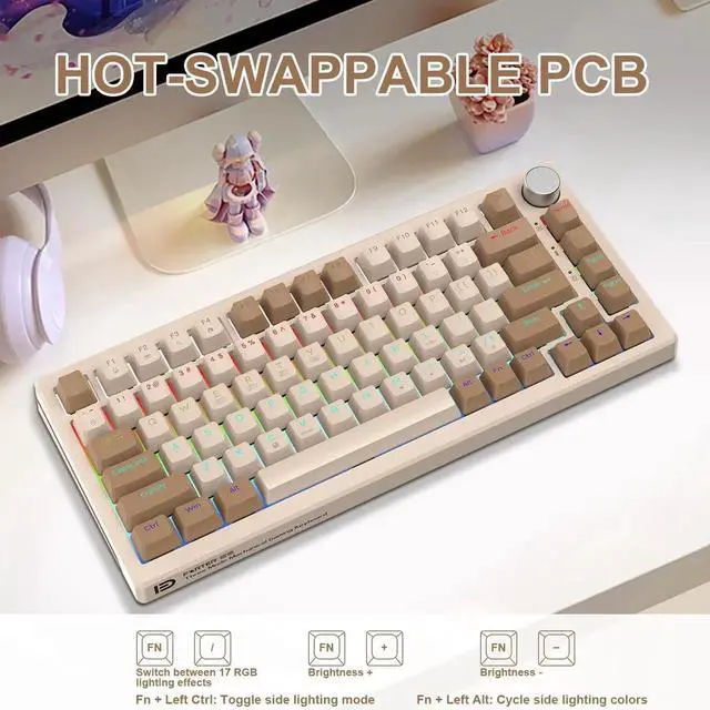 HUO JI 75% Wireless Mechanical Keyboard, Pre-lubed Blue Switches, Hot Swappable, Gasket Structure, Bluetooth/ 2.4GH z/USB-C, Led Backlit, PBT Keycap Custom Gaming Keyboard for PC