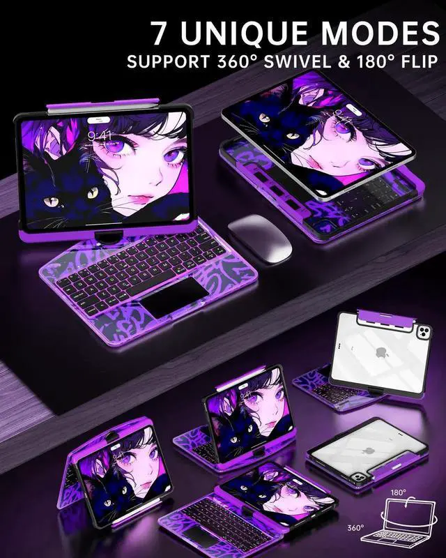 Intermerge Clear iPad A16 11th (2025) & 10th Generation 10.9" Case with Keyboard, 360° Transparent Multi-Touch Trackpad, 7-Color RGB Keyboard, Pencil Holder, Type-C, Power Indicator, Neon Pulse