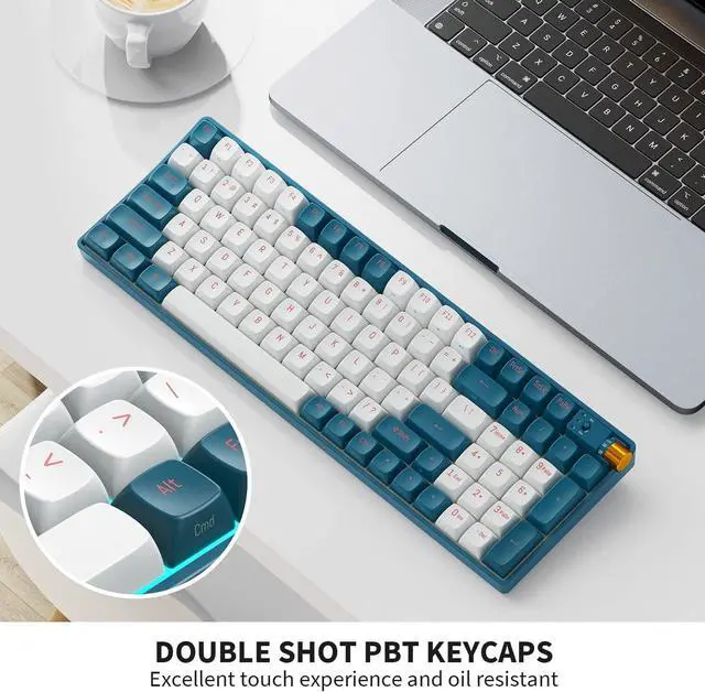Other Features1) Oil-resistant PBT keycaps to prevent long-term grime buildup; 2) The switch on the top right corner to switch systems between Win and Mac; 3) Anti-Ghosting. All Keys Non-Conflict NKRO (N-Key Rollover).