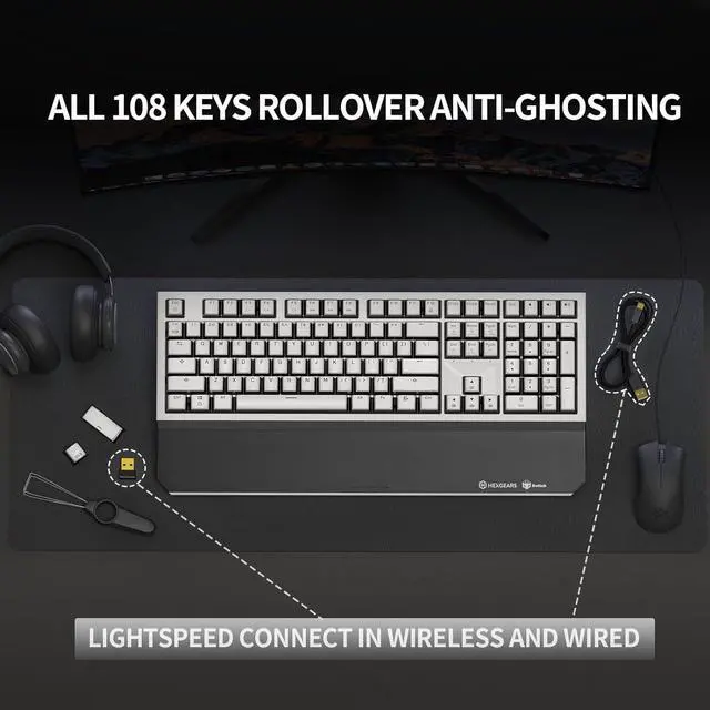 The HEXGEARS X5 Mechanical Gaming Keyboard is designed for gamers who demand high performance and reliability. This full-size keyboard retains the usual number keys and other function keys, and the 108-key layout is a great choice for typing office work.