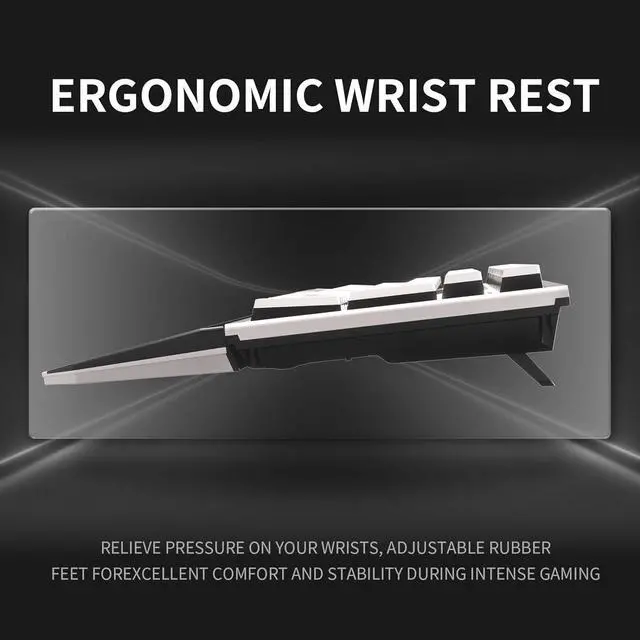 The ergonomic snap-on wrist rest improves comfort and reduces strain on the wrist during long gaming sessions or in the office. There is also an adjustable keyboard kickstand that allows you to adjust the height you need at will.
