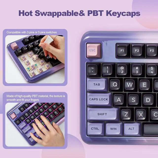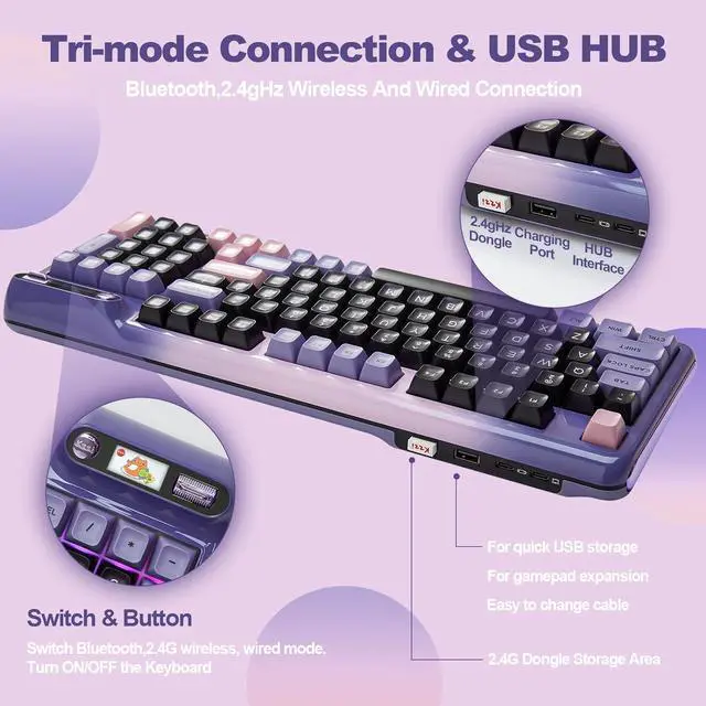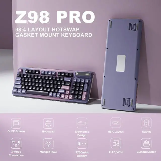 The Z98 94 key keyboard is for Win/Mac. The multi device keyboard is compatible with Laptop, iPad, IOS, Windows, Mac or Android and so on. The Z98 has dual layout for Windows and MacOS. This PC Gaming Keyboard has been ergonomically designed to be a superb typing tool for office typing or gaming, geared for mechanical keyboard enthusiasts.