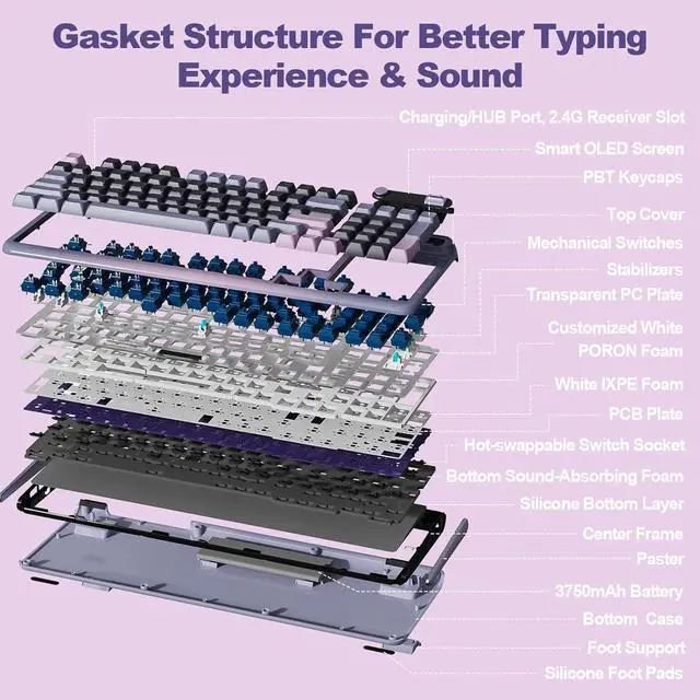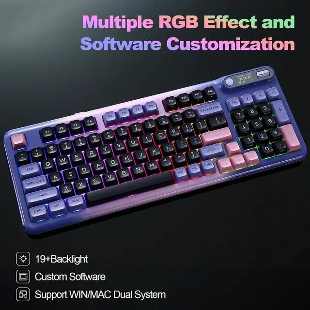 For the backlight, with 14 default light patterns and 8 backlight colors, the RGB keyboard takes south-facing LED, which better illuminate the keyboard backlight and light up gaming accessories. You can easily change RGB with simple shortcuts and the keyboard OLED. The compatible software is available for more DIY settings.