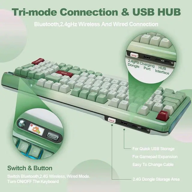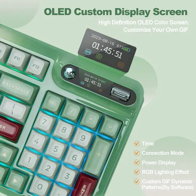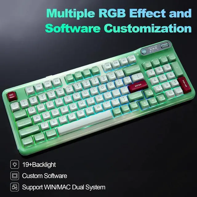 For the backlight, with 14 default light patterns and 8 backlight colors, the RGB keyboard takes south-facing LED, which better illuminate the keyboard backlight and light up gaming accessories. You can easily change RGB with simple shortcuts and the keyboard OLED. The compatible software is available for more DIY settings.