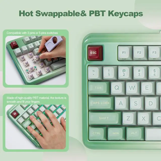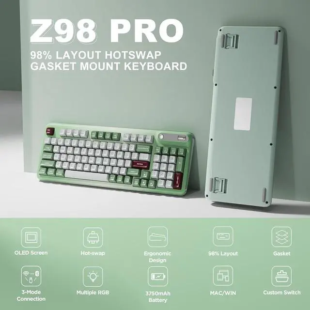 The Z98 94 key keyboard is for Win/Mac. The multi device keyboard is compatible with Laptop, iPad, IOS, Windows, Mac or Android and so on. The Z98 has dual layout for Windows and MacOS. This PC Gaming Keyboard has been ergonomically designed to be a superb typing tool for office typing or gaming, geared for mechanical keyboard enthusiasts.