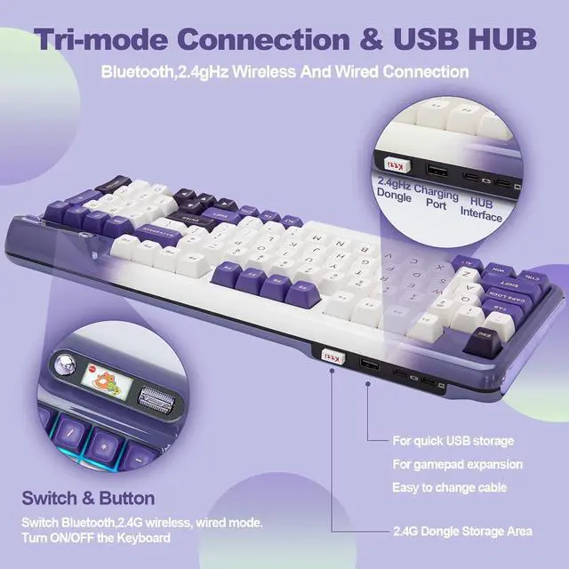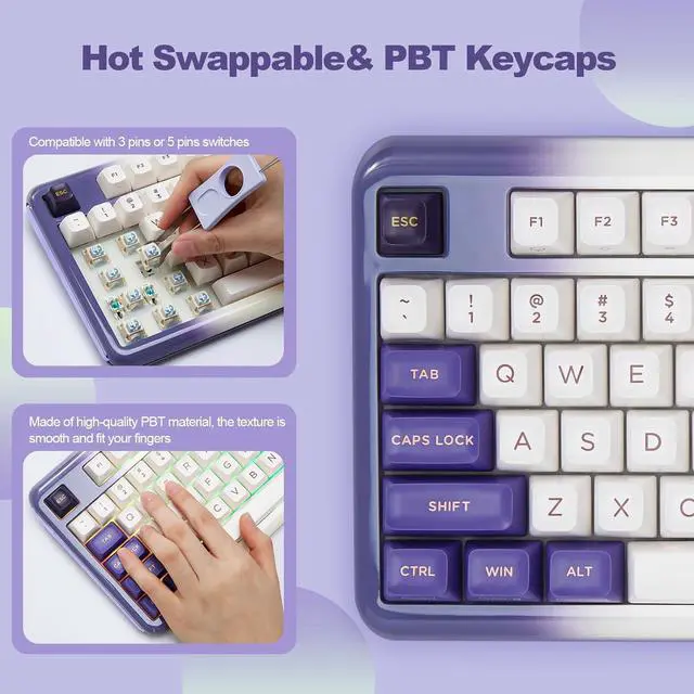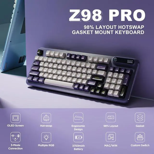 The Z98 94 key keyboard is for Win/Mac. The multi device keyboard is compatible with Laptop, iPad, IOS, Windows, Mac or Android and so on. The Z98 has dual layout for Windows and MacOS. This PC Gaming Keyboard has been ergonomically designed to be a superb typing tool for office typing or gaming, geared for mechanical keyboard enthusiasts.