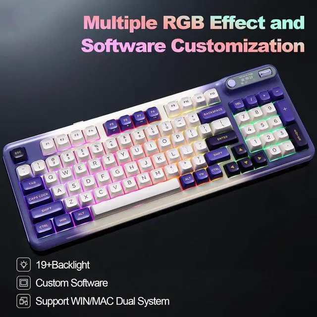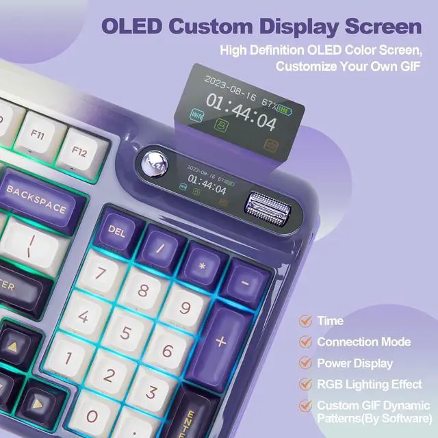 For the backlight, with 14 default light patterns and 8 backlight colors, the RGB keyboard takes south-facing LED, which better illuminate the keyboard backlight and light up gaming accessories. You can easily change RGB with simple shortcuts and the keyboard OLED. The compatible software is available for more DIY settings.