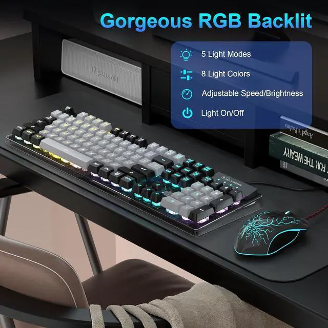 Waterproof USB 2.0 cable, gold-plated interface and anti-interference magnet ring can ensure stable data transmission. This pc gaming keyboard is treated with ABS engineering plastic to prevent wear and tear. Works perfectly with Windows XP/Vista/Win7/Win8/Win10, MAC, Linux or other operating system.