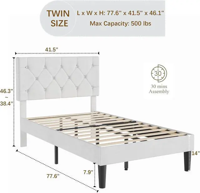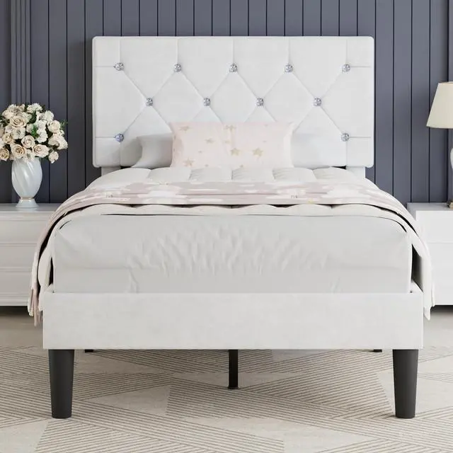 [Stylish and Luxe] - Draped in sleek pink Lavender faux leather with sparkly diamond accents and tufted detailing, this twin bed frame with storage screams modern elegance. Its got a stylish look that suits just about any bedroom decor.