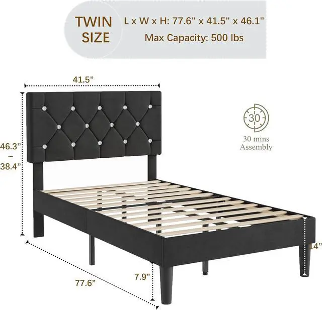 [Stylish and Luxe] - Draped in sleek pink Lavender faux leather with sparkly diamond accents and tufted detailing, this twin bed frame with storage screams modern elegance. Its got a stylish look that suits just about any bedroom decor.