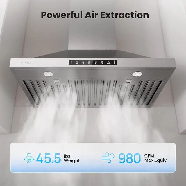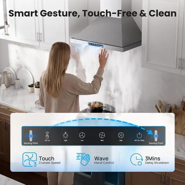 VIKIO HOME 30 Inch Pro Wall Mount Range Hood 980CFM, Direct 3 Speed Panel with Gesture & Touch Control, Ducted/Ductless Stainless Steel Kitchen Vent Hood, Delay Shut-Off, Includes Duct & Filter