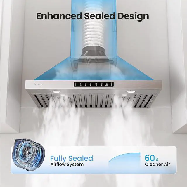 Dual Intake, 20% More AirflowThis motor features dual-sided air intake, increasing airflow by 20% compared to single-sided systems. With a powerful 580 CFM capacity, the wall mount range hood 30-inch effectively eliminates smoke and odors, making it suitable for various cooking styles.