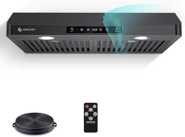 LED Lights and 3-Speed FanAMZCHEF undercabinet range hoods come with 2x1.5W LED lamps, provides bright lighting vision.Total 3 power levels fan, instantly exhaust vapour, smoke, oli from kitchen.Save energy and reduct harassment on housework.