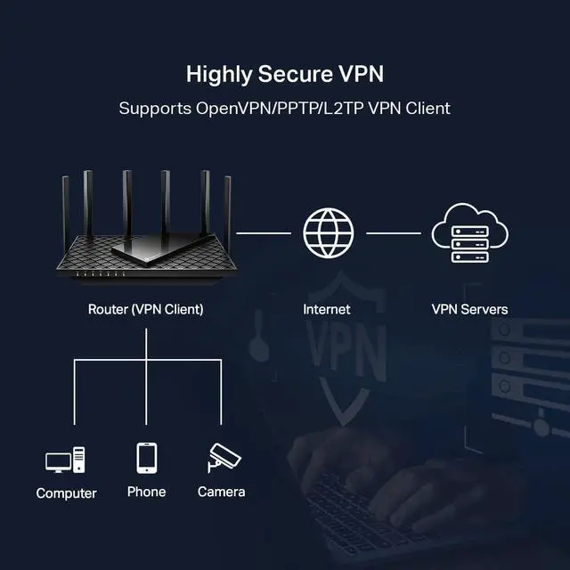VPN Server and Client: Archer AXE75 Supports both VPN Server and VPN Client (OpenVPN/PPTP/L2TP)