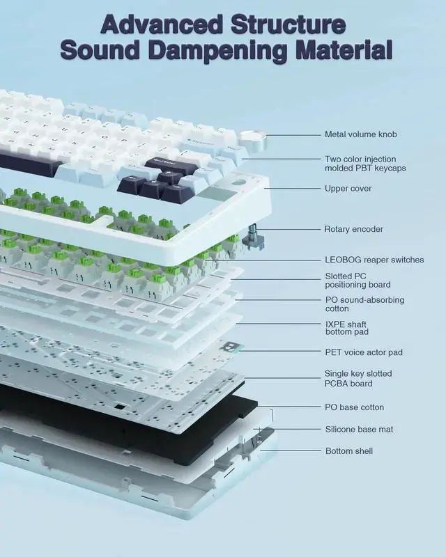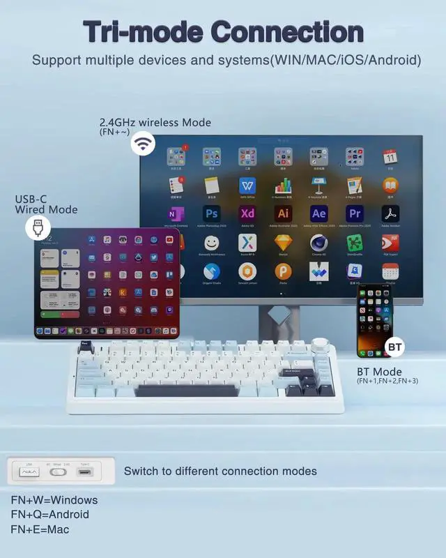 F75 75% Wireless Mechanical Keyboard, Hot Swappable Custom Keyboard,Pre-lubed Reaper Switches RGB Backlit Gaming Keyboard,2.4GHz/Type-C/BT5.0 Mechanical Keyboard (White & Blue)
