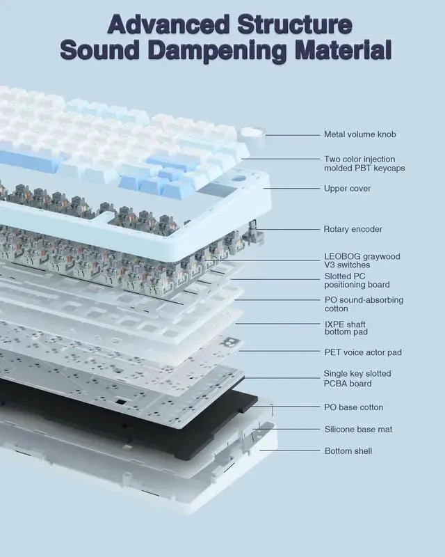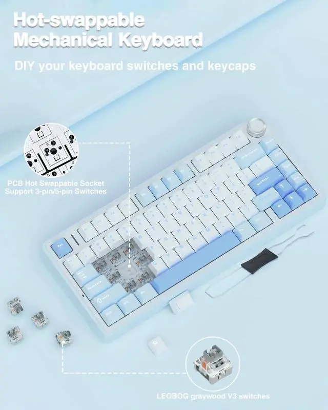 F75 75% Wireless Mechanical Keyboard, Hot Swappable Custom Keyboard,Pre-lubed Greywood Switch RGB Backlit Gaming Keyboard,2.4GHz/Type-C/BT5.0 Mechanical Keyboard (Salt White Blue)