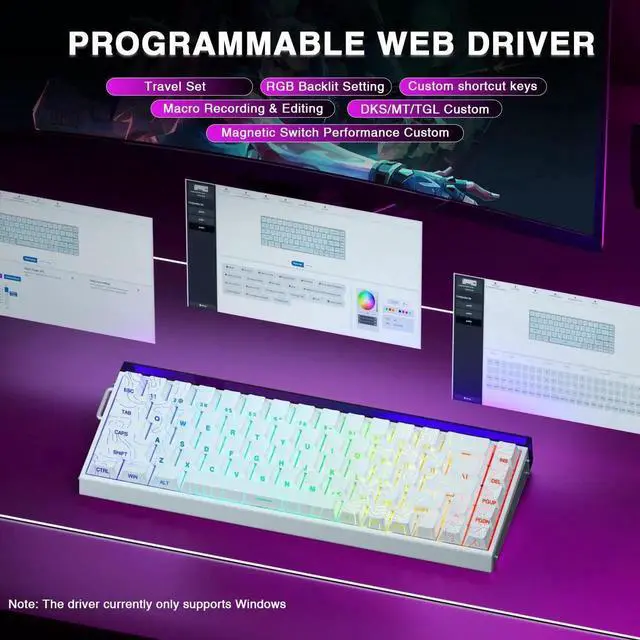 - 60% Wired Gaming Keyboard: No matter the outlook, the construction, or the function, this fast trigger keyboard is definitely a professional gaming keyboard. This 68-key 60% layout compact keyboard can save more desktop space while retaining the necessary arrow keys for gaming. USB-C wired mode provides gamers with a more stable connection and greatly enhances the gaming experience.