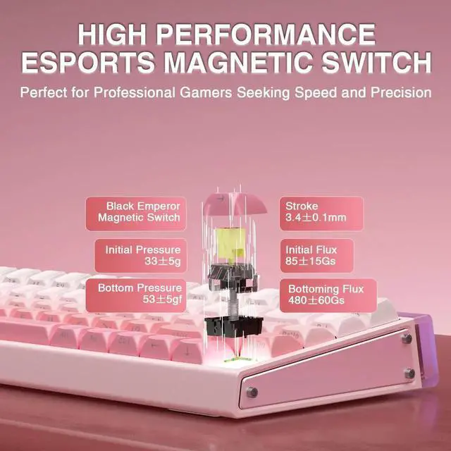 HERO 68HE 60% Wired Gaming Keyboard, Hall Effect Magnetic Switch Keyboard with Adjustable Actuation, Fast Trigger Mode, 8K Hz Polling Rate, 0.125ms Latency, RGB Backlit, Side Printed PBT Keycaps(Pink)