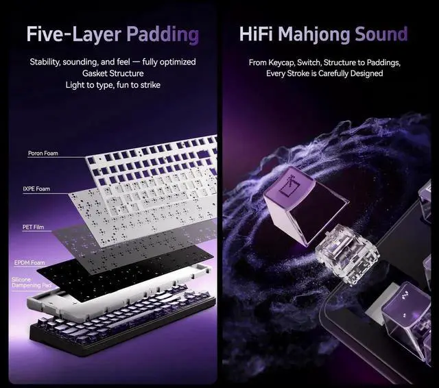 • GASKET STRUCTURE: Gasket-mounted design with multi-layer damping; soft, stable key feel and reduced acoustic resonance.